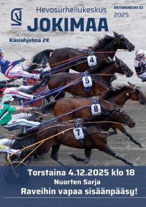 PIKKUJOULURAVIT 12.12.2025 Tapahtumat 12.12.2025 18:00 - 21:00 Pikkujouluravit Jokimaan RavikeskusJokimaankatu 6, 15700 Lahti 18.12.2025 18:00 - 21:00 Ilmaisravit Jokimaan RavikeskusJokimaankatu 6, 15700 Lahti 31.12.2025 13:00 - 16:00 Uudenvuodenravit Jokimaan RavikeskusJokimaankatu 6, 15700 Lahti 10.01.2026 13:00 - 18:00 Jokimaa Gaala -ravit 16.01.2026 18:00 - 21:00 Ilmaisravit 23.01.2026 18:00 - 21:00 Ilmaisravit › Mene tapahtumakalenteriin Ajankohtaista 4.12. ravien voittajat & kuvat ILMAISRAVIT TORSTAINA 4.12. KLO 18 – Raveihin vapaa sisäänpääsy – KÄSIOHJELMA ILMESTYNYT Kimmo Kemppi Lahden Hevosystäväinseuran puheenjohtajaksi mikkelin 75-ravit lauantaina jokimaalla – olosuhdeinfo – la klo 09:00 Mikkelin lauantain ravit siirretään Lahteen vapo-ajajaliiga vaikuttaa jo ratkenneen – valmentajaliigassa huipputasaista › Lue lisää ajankohtaisia Info & saapuminen Ruoka & juoma Vuokraa tiloja Osta lippu Facebook Twitter Instagram Youtube Tiktok