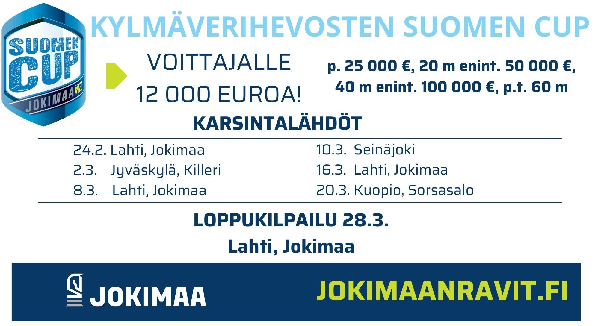 Lauantai 28.3. loppukilpailu Jokimaa – voittajalle 12 000 €
