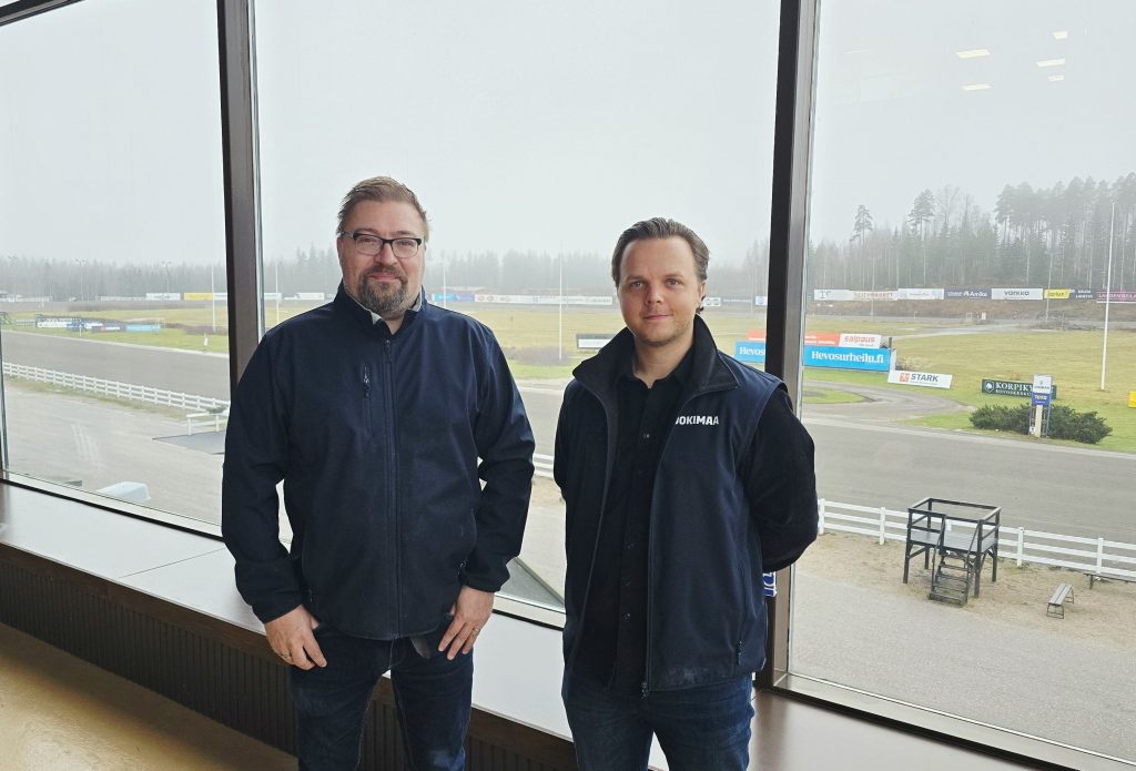 Mitja Nummenmaa (vas.) ja Ville Holopainen ovat sopineet vuoden 2026 varsahuutokaupan järjestämisestä Lahden Jokimaalla.