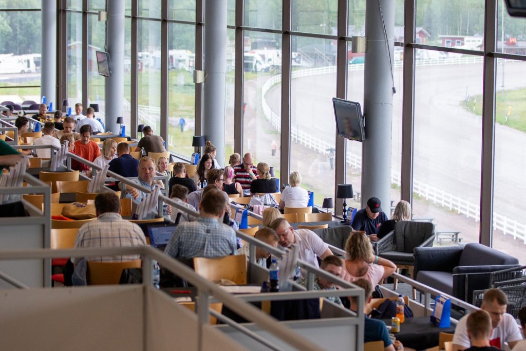 Ravintolakatsomossa on tyylikkäät puitteet ravien seuraamiseen.