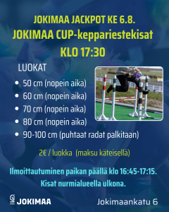 Jokimaa Jackpot on suuripalkintoinen kilpailu Suomessa syntyneille kolmivuotiaille lämminverisille. Voittajalle on luvassa 25 000 euron ykköspalkinto! Muut sijoille pääsevät voittavat 15 000 € – 10 000 € – 5000 € – 5000 €