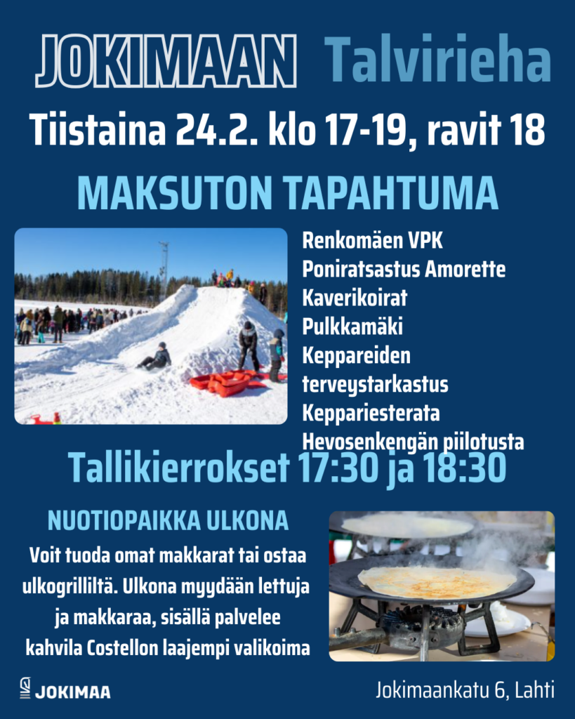 Jokimaalla on ravit tiistaina 24.2. klo 18. Lapsille suunnattua ohjelmaa on klo 17-19 on talviriehan tiimoilta. Raveihin ja talviriehaan on vapaa pääsy.