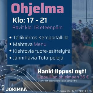 Kerää ystäväporukka kokoon ja tule viettämään mukava ja mieleenpainuva ravi-ilta Jokimaalle!