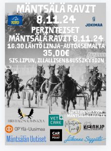 Perinteiset Mäntsälä-ravit Lahden Jokimaalla 8.11.2024 klo 17-21.