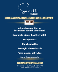 Sametti Loungessa Lihakauppa Roslundin grillibuffet 45€.