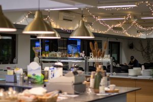Ravien aikana teitä palvelee 3.kerroksen ravintola, josta saatavilla muun muassa virvokkeita, siipiä, burgereita sekä makkara- ja kanakoreja.